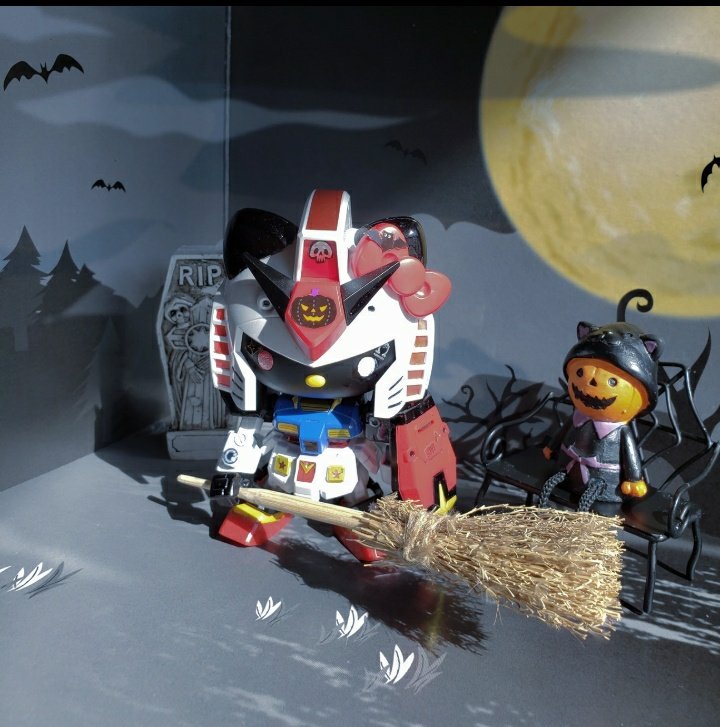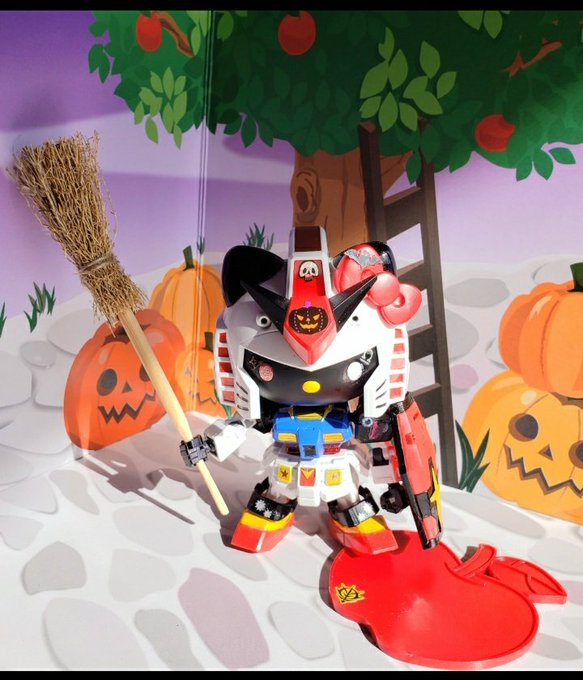 #ガンプラハロウィン2021 #GTAZ #ガンプラ集団x絶対零度 リンゴ大好きキティちゃんは、お昼間は木の周りのお掃除をする良い子です🍎 そして夜になると、リンゴ泥棒と戦う戦士になるのです🍎 ^._.^『Apple or die』 ハロウィンなので白猫を黒猫に♥(*ノω・*)テヘ♡