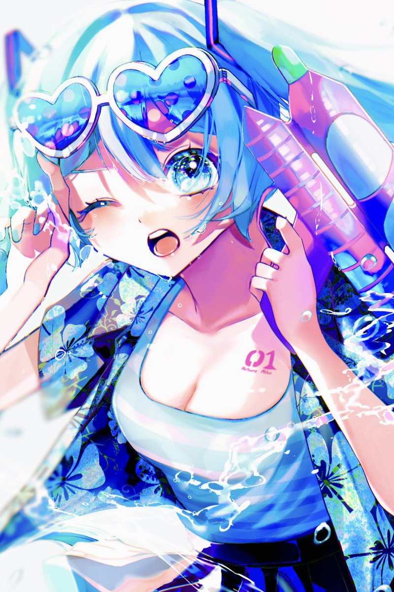暑いね!!💦=-🔫💕 #初音ミク #イラスト