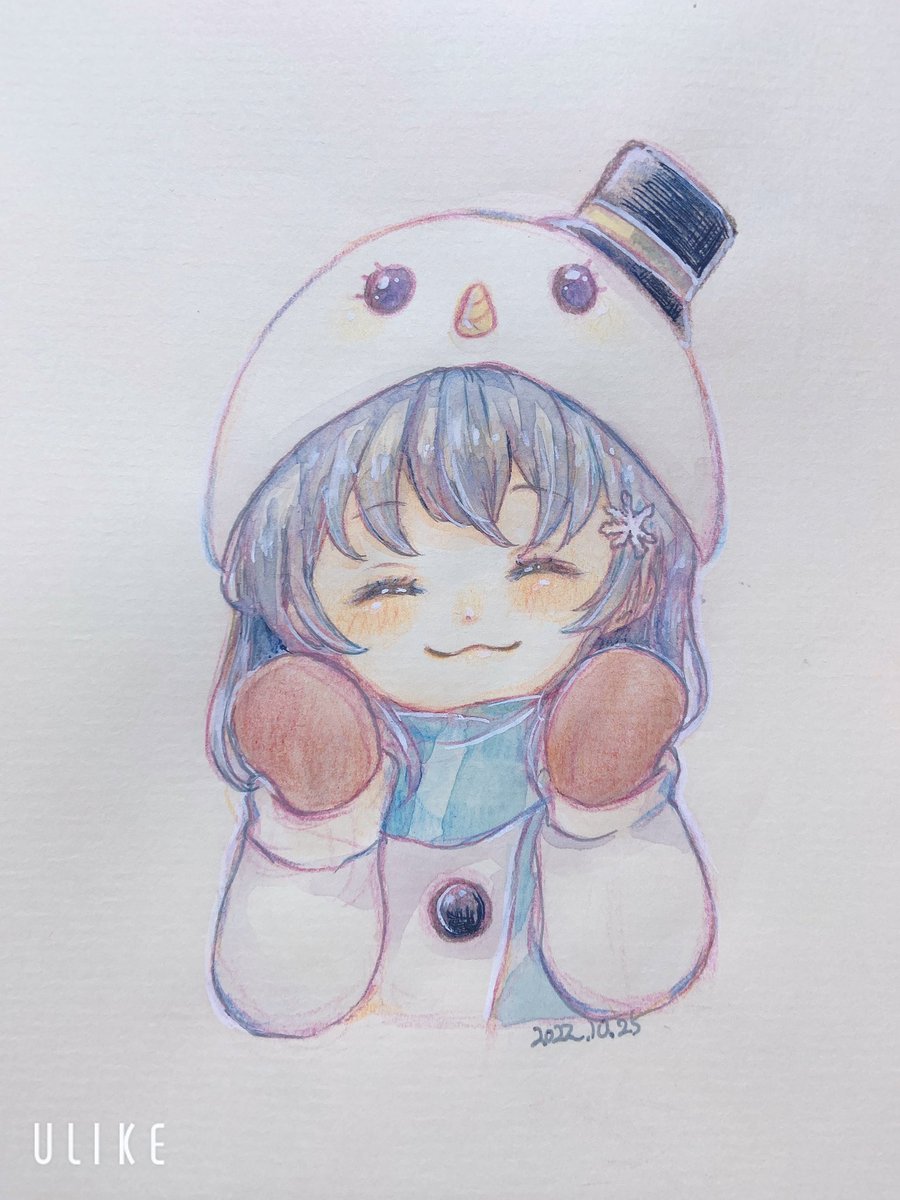 26 174 雪だるまちーちゃん☃️❄︎.* 雪だるまちゃんの帽子の方もかわいいですよね😌今年中にちひろさんも描きたい… #ちーあーと 22/10/25 00:50