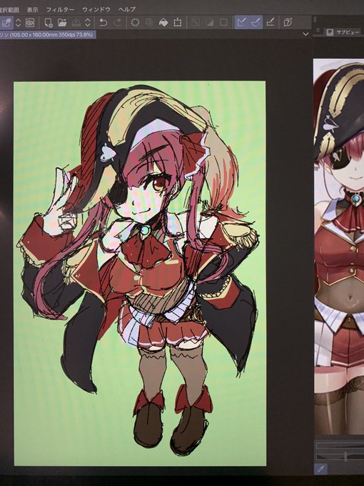マリン船長初描き中 似てない? 構わん、コレが俺の絵だ