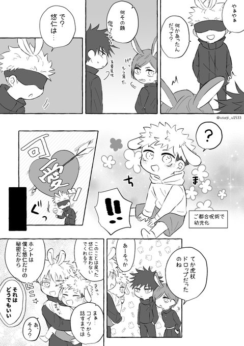 84 1101 🐰バースぽい五悠で、ちいさくなっちゃったゆじくんのらくがき… ※🐰×しょたていうヘキ全開です… 23/06/17 23:58