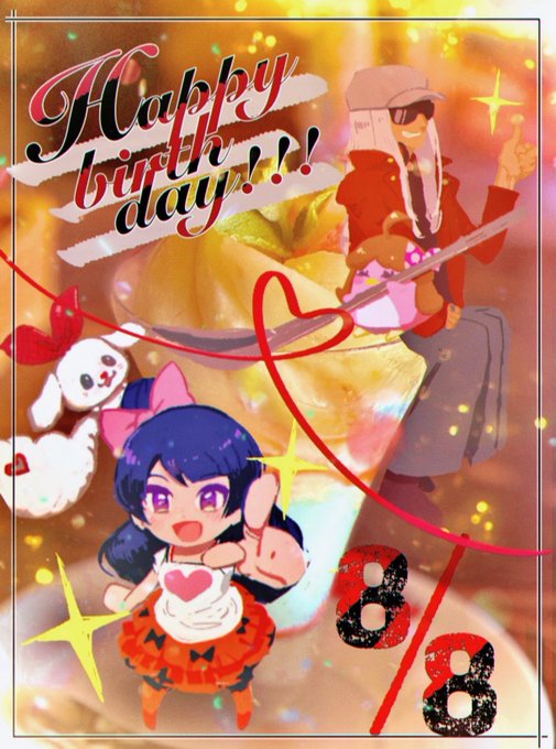 13 20 過去絵ですが黒川冷誕生日絵とクーモモ絵詰め合わせ♡今日は2人でケーキ食べてて欲しい(用意したケーキ🧁はモモが全部食べました🍴) #黒川冷生誕祭2021 21/08/08 07:55