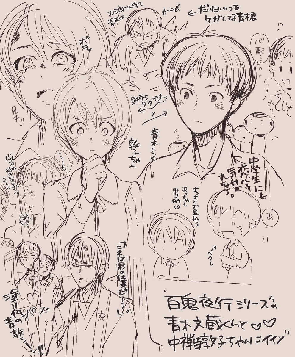 1 7 20年ぐらい推しているけど百鬼夜行シリーズの青木×敦子は良いぞ。青敦ー!という落書き。 20/05/10 00:08