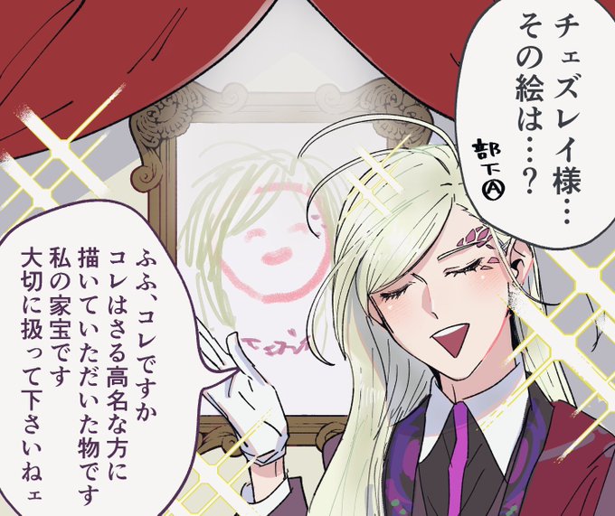 19 32 #チェズルク版ワンドロワンライ 大遅刻です…! お題 芸術 画伯に描いて貰った絵を家宝にするチェズレイです!! 22/10/09 23:14