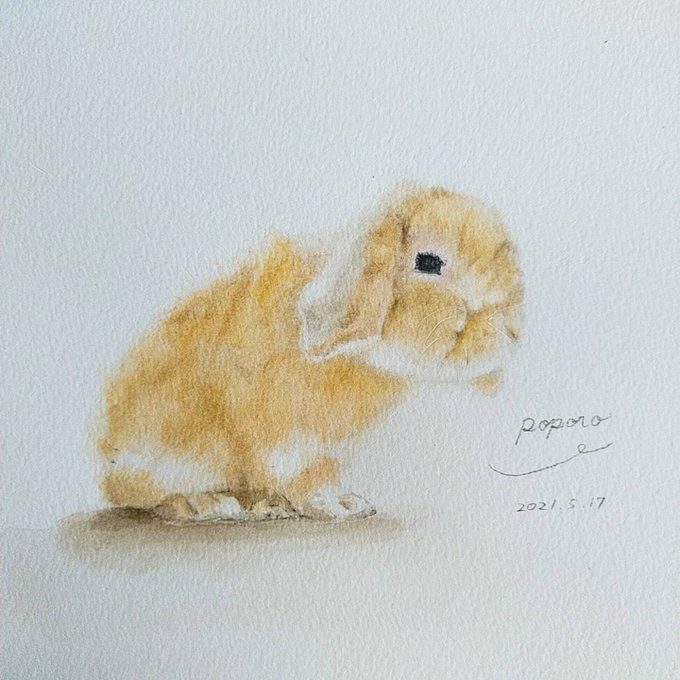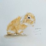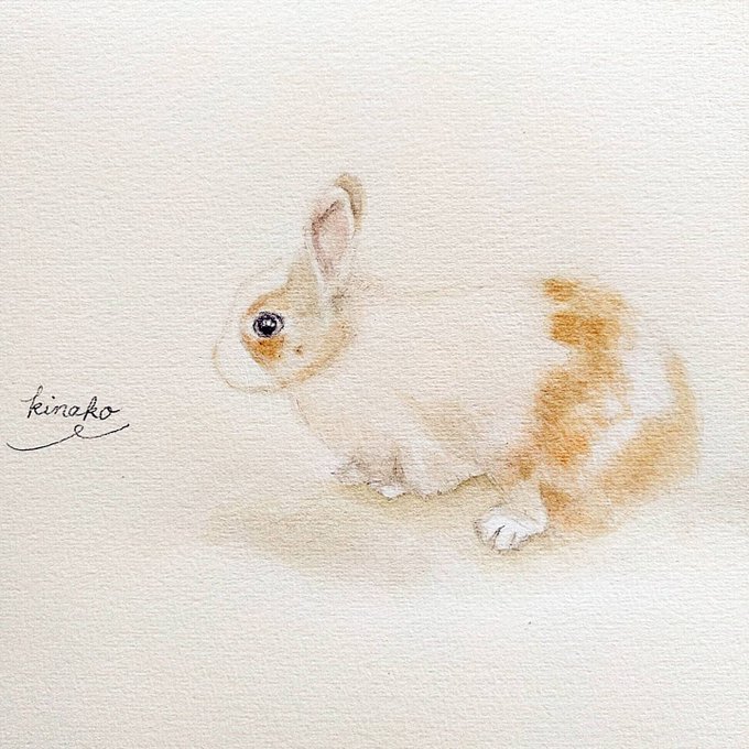 もんちゃん🐰 オレンジカラーが可愛いもんちゃんにモデル🐰さんになっていただきました😍 もんちゃんがおうちに来た当時のお写真から描きました🎨 #うさぎ #うさぎ絵 #うさぎのいる暮らし #うさぎのいる生活 #水彩画 #透明水彩 #watercolorpainting #rabbit