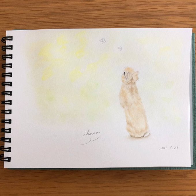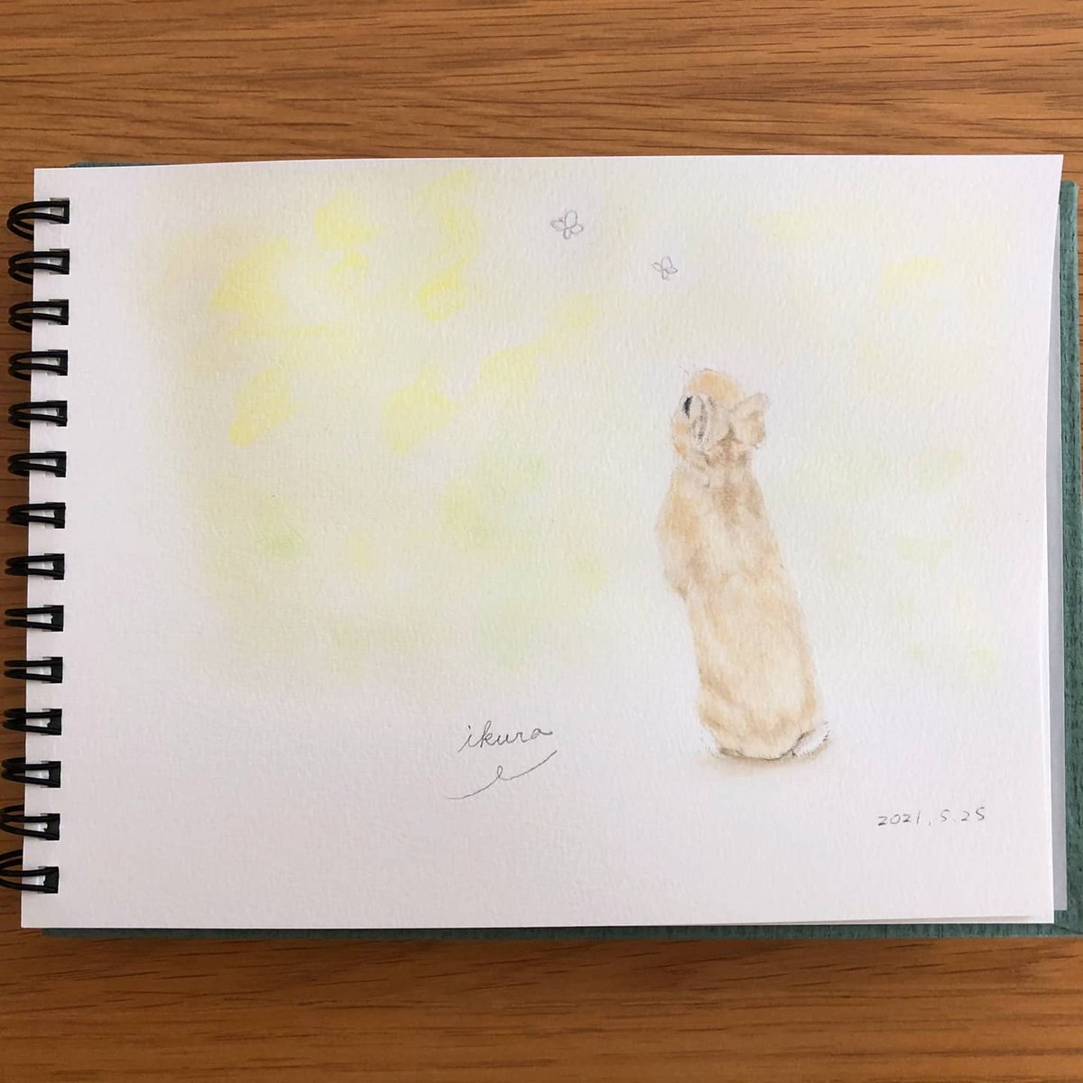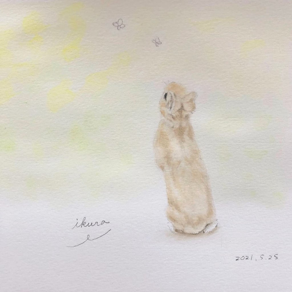 いくらくん🐰 🦋を眺めているイメージが浮かびました🎨 #うさぎ #うさぎ絵 #うさぎイラスト #うさぎのいる生活 #うさぎのいる暮らし #ネザーランドドワーフ #水彩画 #透明水彩 #rabbit #bunny #watercolorpainting