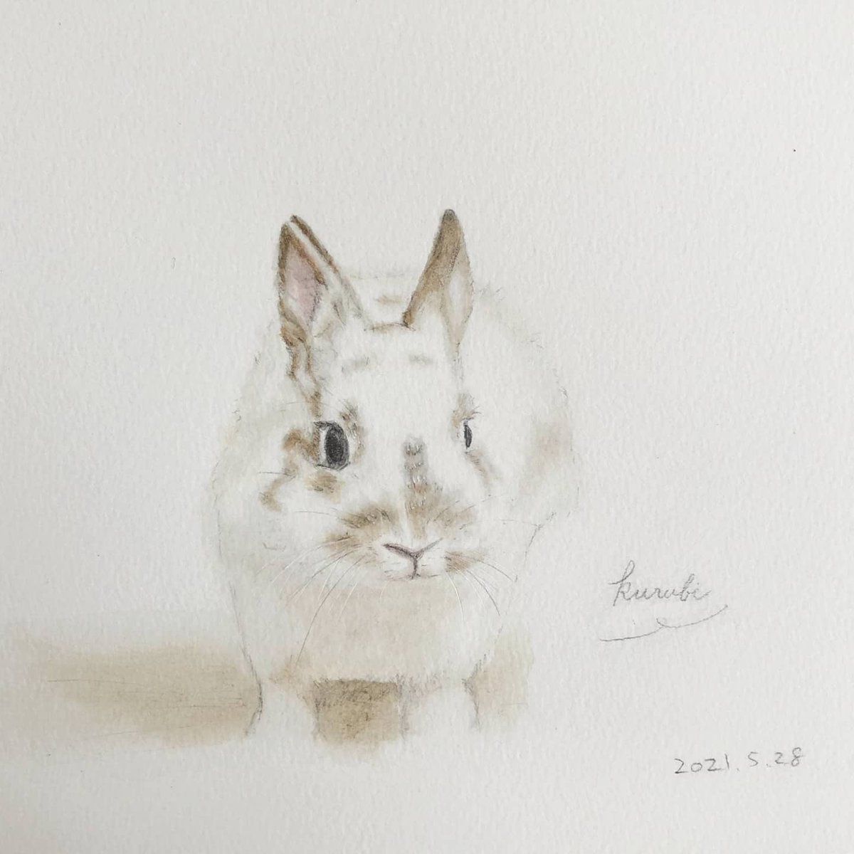 クルビちゃん🐰 モデル🐰さんになっていただきました💕 繊細で美しい毛並みのクルビちゃんです😍 #うさぎ #うさぎ絵 #うさぎイラスト #ネザーランドドワーフ #ブロークンチンチラ #うさぎのいる生活 #うさぎのいる暮らし #水彩画 #透明水彩 #rabbit #bunny #watercolorpainting