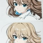 ✅みんなの髪色の好みどっち? ※現物より少し明るくなってます 個人的にイメージ色は下なんだけど皆ならどっち選びますか? ※瞳の色が違うのは先日のテスト分で塗ったからです。 #セル画 #線画 #絵描きさんと繫がりたい