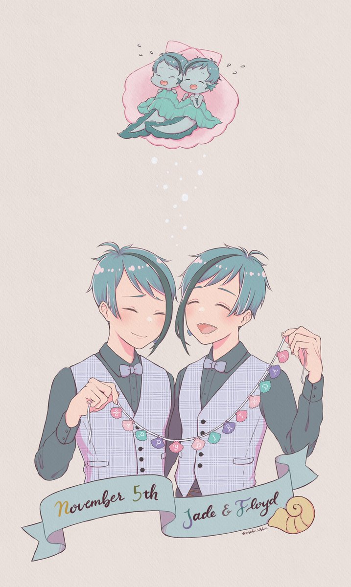 ウツボな双子ちゃんお誕生日おめでとう!🎂🎉🎁 君たちの行く手にたくさんの「楽しいこと」が待っていますように…🌟 #リーチ兄弟誕生祭2021 #ジェイド・リーチ誕生祭2021 #フロイド・リーチ誕生祭2021