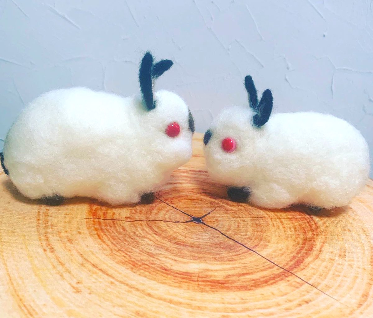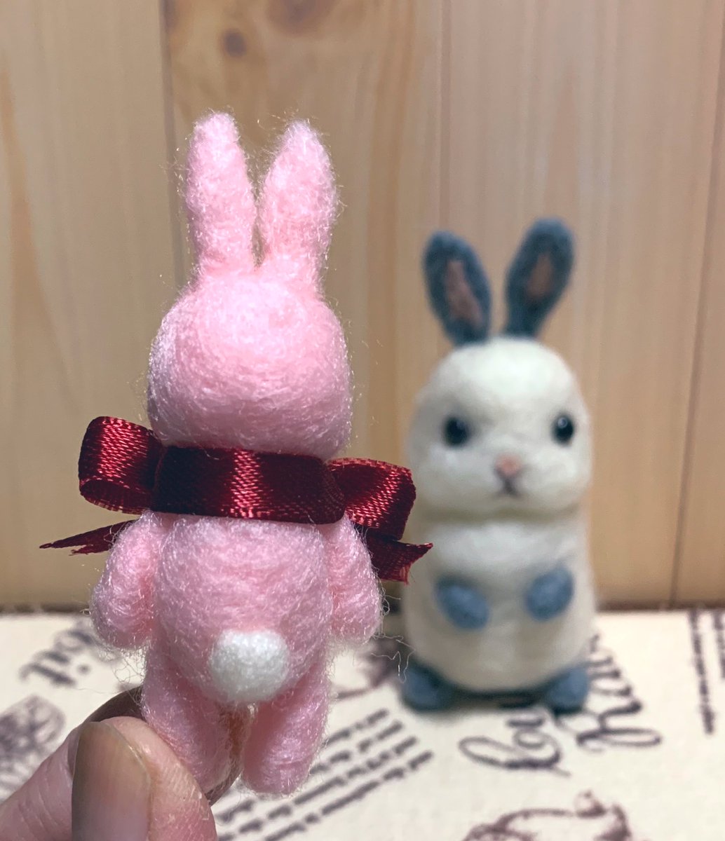 ご注文いただいた、 羊毛うさちゃんできました☺️ ありがとうございます💖 たちみみうさちゃんです🐇 なまくびちゃんw ミニミニうさちゃんのおちりが可愛いー💖 #羊毛フェルト #ニードルフェルト #うさぎ #ウサギ #ハンドメイド #ハンドメイド作品