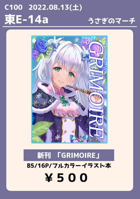 25 59 ◎あなたのサークル「うさぎのマーチ」は、土曜日 東地区 "E" ブロック-14aに配置されました。 C100スペース頂けてました!ファンタジー系の一次創作本を出します! 原稿頑張ります! 22/06/10 18:18