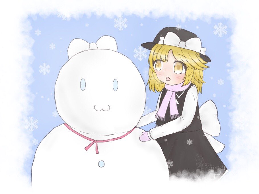 #東方版もうひとつの深夜の真剣お絵描き60分一本勝負 雪が降ったから雪だるまを作ったユキちゃん❄️