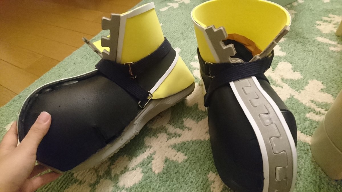 #このタグを見た人はラフ造型とその完成品を見せる KHソラの靴 しかしこの手作りシューズで夢の国園内闊歩は難しかった(わりと早い段階で大破)