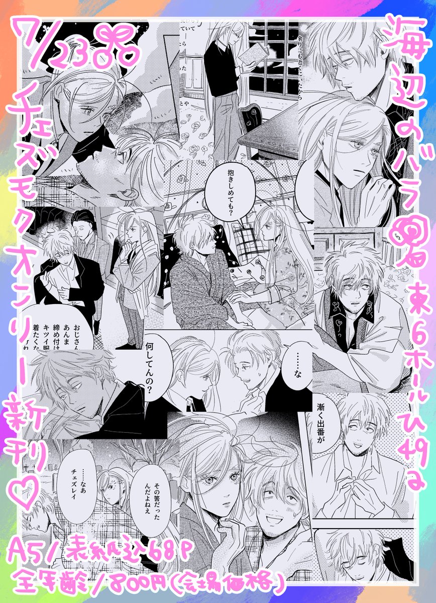 7/23(土)星に願いを。day1 チェズモクオンリー【チェリーモクテルで乾杯を】 で配布する新刊のサンプルです🍒 A5/本文64p/¥800/全年齢 ヴの前に関係のあった二人……というテーマで描きました。 よろしくお願い致します☆ 長めのサンプル→ pixiv.net/artworks/99721…