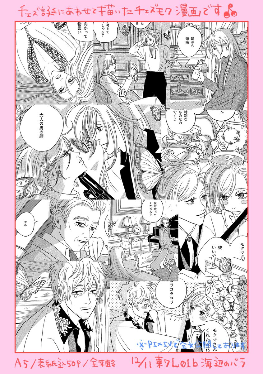 12/11のチェモパイに持っていくチェズモクの新刊です🍒💜💛 pixivに全文公開しております→pixiv.net/artworks/10344… でも紙でも買ってくれたら嬉しいです!よろしくお願い致します🦋 👻本編のネタバレを含みます