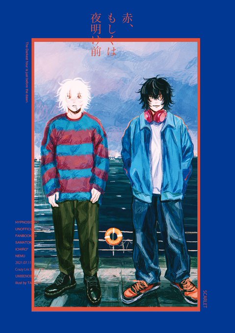 赤、もしくは夜明け前【web再録】 | たまこ #pixiv pixiv.net/artworks/10769… あと以前Twitterでだけ再録していてサマイチとネムのイラスト本もあげてきました。2年前…(驚愕)