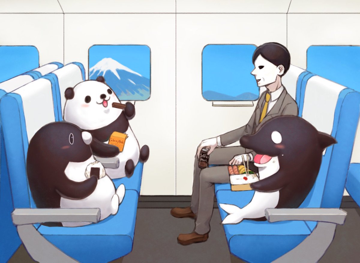 7 42 旅行にいきたくなってきたので某企画の社員旅行(出張?)イラスト描きました🚅 #テイペンED #テイペン魚拓 22/04/01 23:40