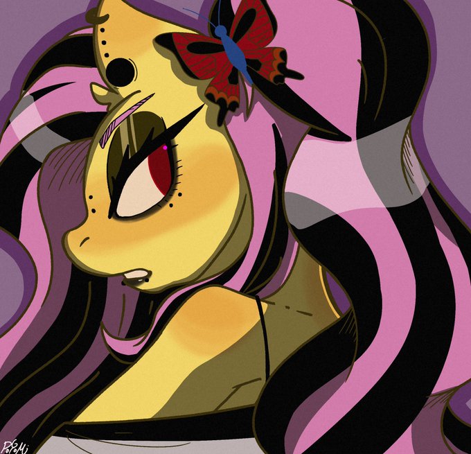 Fluttergothらくがき さっきTLで似た構図のイラスト見て上げるか悩んだけどあげちゃう、指摘されたら消す(?) #mlp #mlpfanart