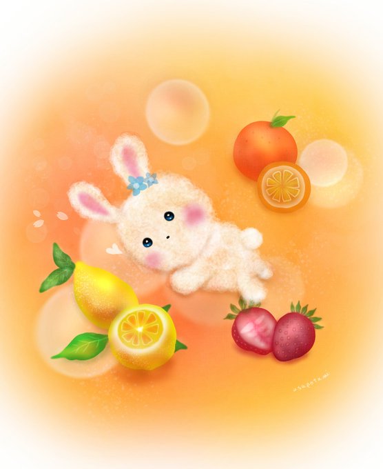 『 ほのぼの遊び 』を描きました🐇🍋 #イラスト #おやすみイラスト #うさぎ