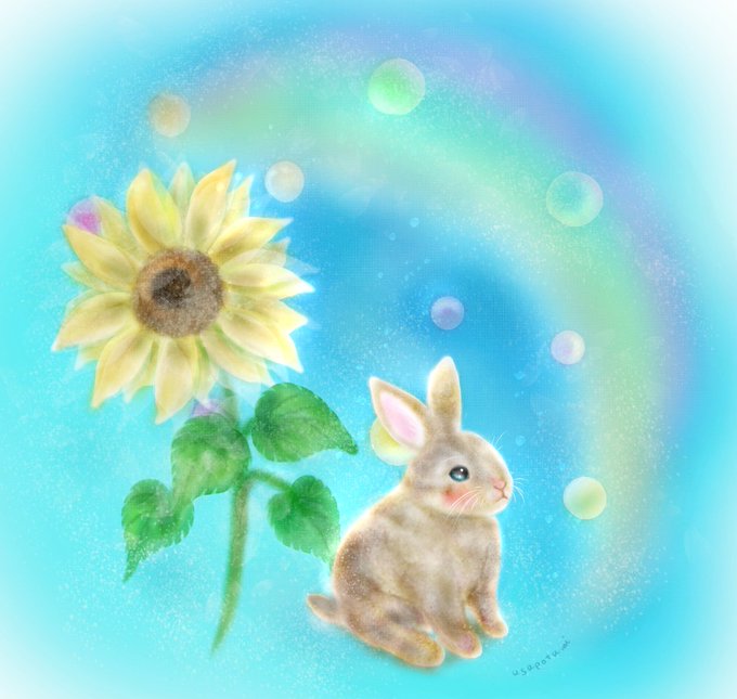 『 アメヒマワリ 』を描きました。o○🌻 #イラスト #おやすみイラスト #うさぎ