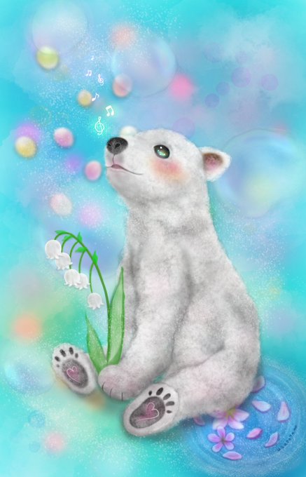 25 239 『 ぽわぽわクマさん 』を描きました🐻❄️.。o○ 明日も素敵な1日となりますように🌼 #イラスト #シロクマ 23/06/12 22:39