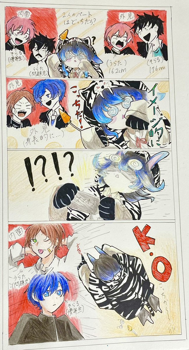 衝動書きなので雑ですが好きなシーンを書きました。満足です( *¯ ꒳¯*) #オールスター大運動会 #そらるの絵 #Ras