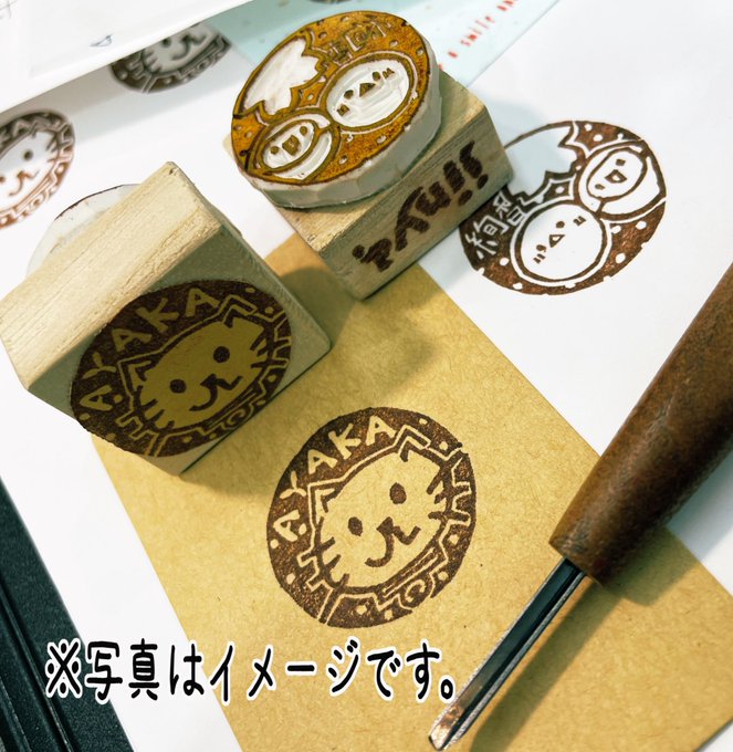 ( φωφ )ノ本日最終日 きたきゅうフェスティバル 小倉井筒屋本館8階 17時まで ロゴをこのサイズで等👌 その場で絵描きが判子を手彫りします 本日も宜しくお願いします🙌✨ #画工判子 #色鉛筆画 #藍染 #ボカニタルキャンドル #正座アクセサリー twitter.com/usausa_satom…