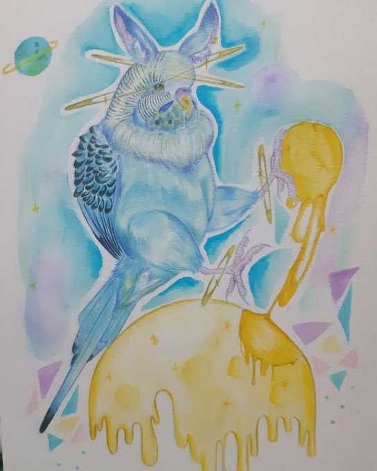 (過去絵) 月見兎は、月を食す。 (うさぎインコちゃん) #インコ #イラスト