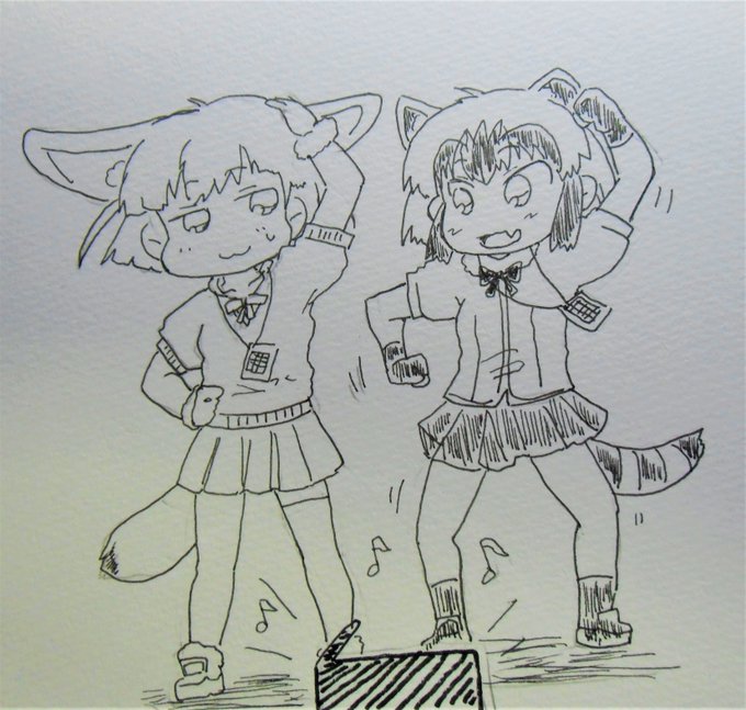 今日のアライさん フェネック(アライさんのラジオ体操って何か変…💦) #アライさん #けものフレンズ
