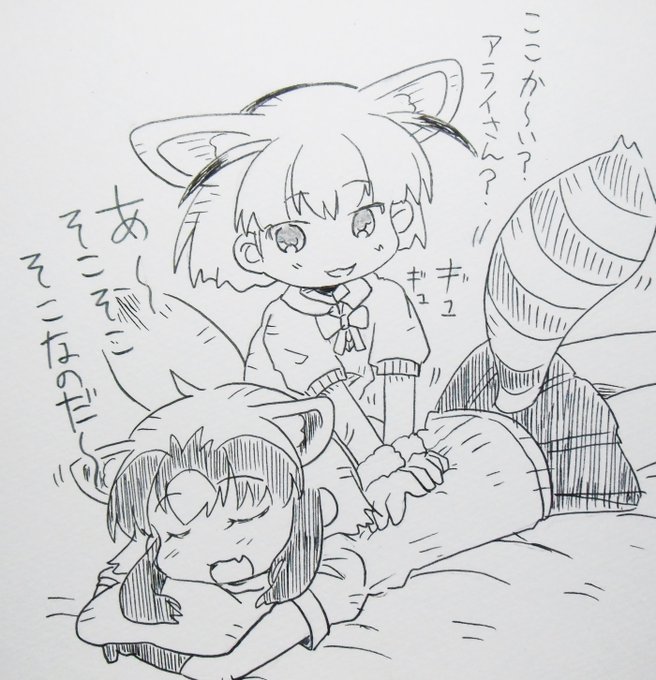 今日のアライさん フェネのマッサージでリラックス… #アライさん #けものフレンズ