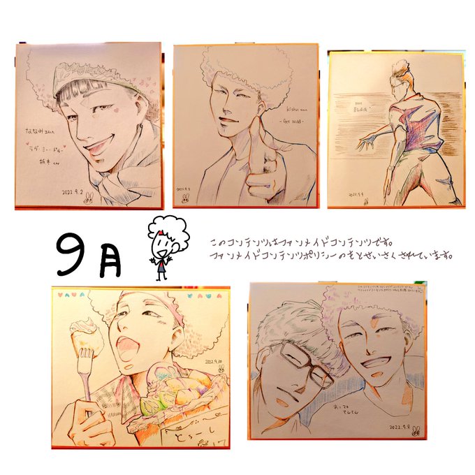 2 40 #今月描いた絵を晒そう #あってぃあーと 全部アナログだった...😌 22/09/30 19:40