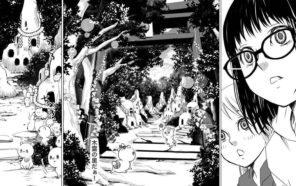 綺麗なものや可愛いものや奇妙なものや怖いものが好きなので、そんな漫画を作ってます🍀 (👇は妖怪「こだま」と「こぐま(子熊)」って字が似てるなぁ、ってとこから独自の木霊ちゃんを作りました🤭) #三億アカウントの中から私を発掘してください #創作漫画 #妖怪