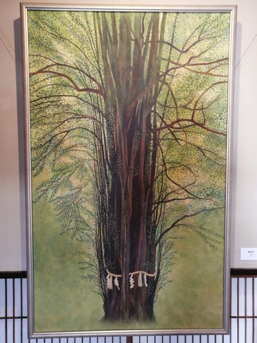 個展開催中です🙋💮🌸 こちらはギャラリーの玄関に飾っています、日本画M60号。貴船神社の御神木で、桂の木です。 rakusinan.com #滋賀県 #楽心庵Gallery #日本画 #水彩画 #イラスト #篆刻 #絵描きさんと繋がたい #イラスト好きな人と繋がりたい