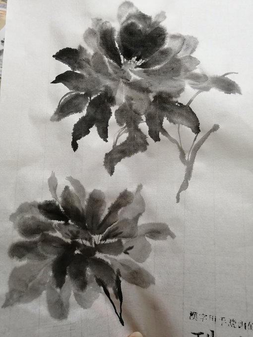 20年くらい前?に、父が中国で買ってきてくれた青墨をひっぱり出してきて水墨画を練習中。やっぱり油煙墨とは違う味わいがあるなぁ。 #絵描きさんと繫がりたい #イラスト好きな人と繋がりたい #花