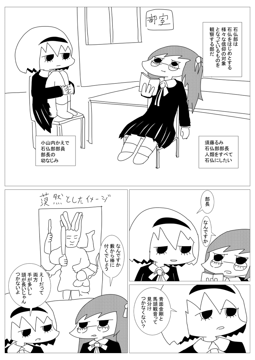 『石仏部』1/2 石仏に興味のある女の子の漫画です