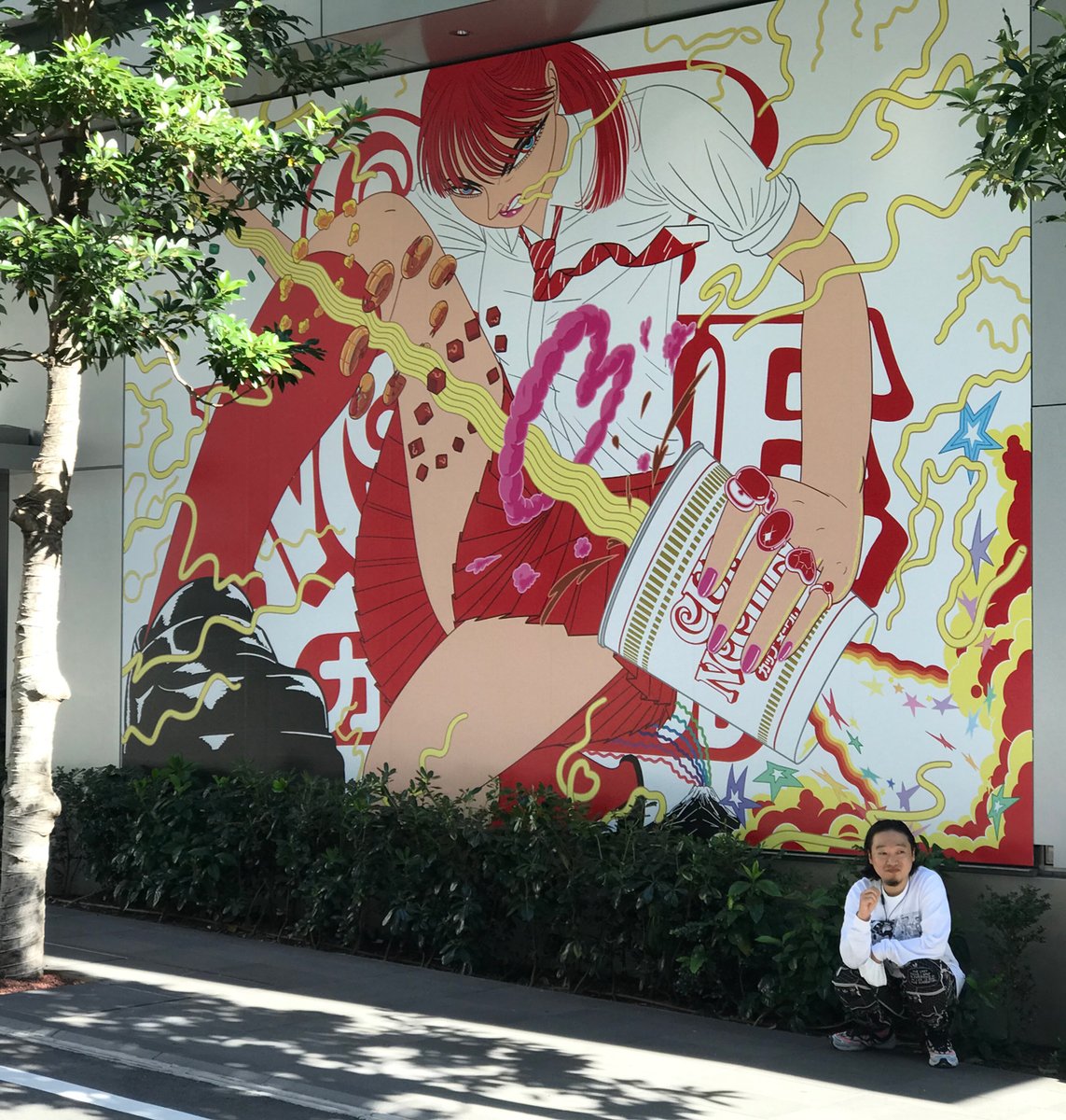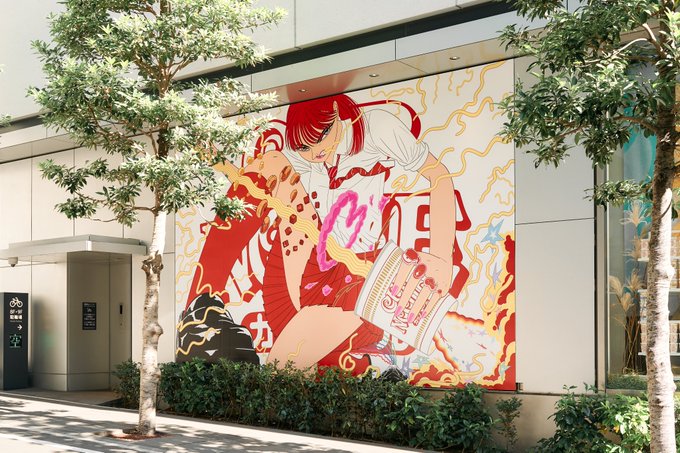 [ work ] CUPNOODLE 50th Anniversary It starts today.This is a huge poster for PARCO, a department store in Japan. 【 カップヌードル×PARCO 】 3Dを駆使したベクター作品です。下でちょこんとしてるのが僕です。過酷な未来と戦う渋谷の女子高生を描きました。16日まで parco.jp/cupnoodle/