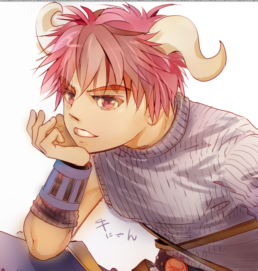 寝るから貼るうううう ちゃんと牛くんだと髪の毛赤く塗るから 自動彩色はほんとわかってる。 #深夜のトリスタ真剣お絵かき60分一本勝負 #tricksternow #トリックスターM