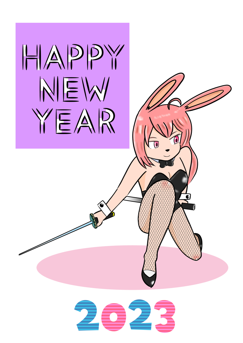 4 9 2023ウサ娘 #年賀状 #年賀状2023 #バニーガール #日本刀 #ケモ耳 pixiv.net/artworks/10410… 23/01/01 00:17