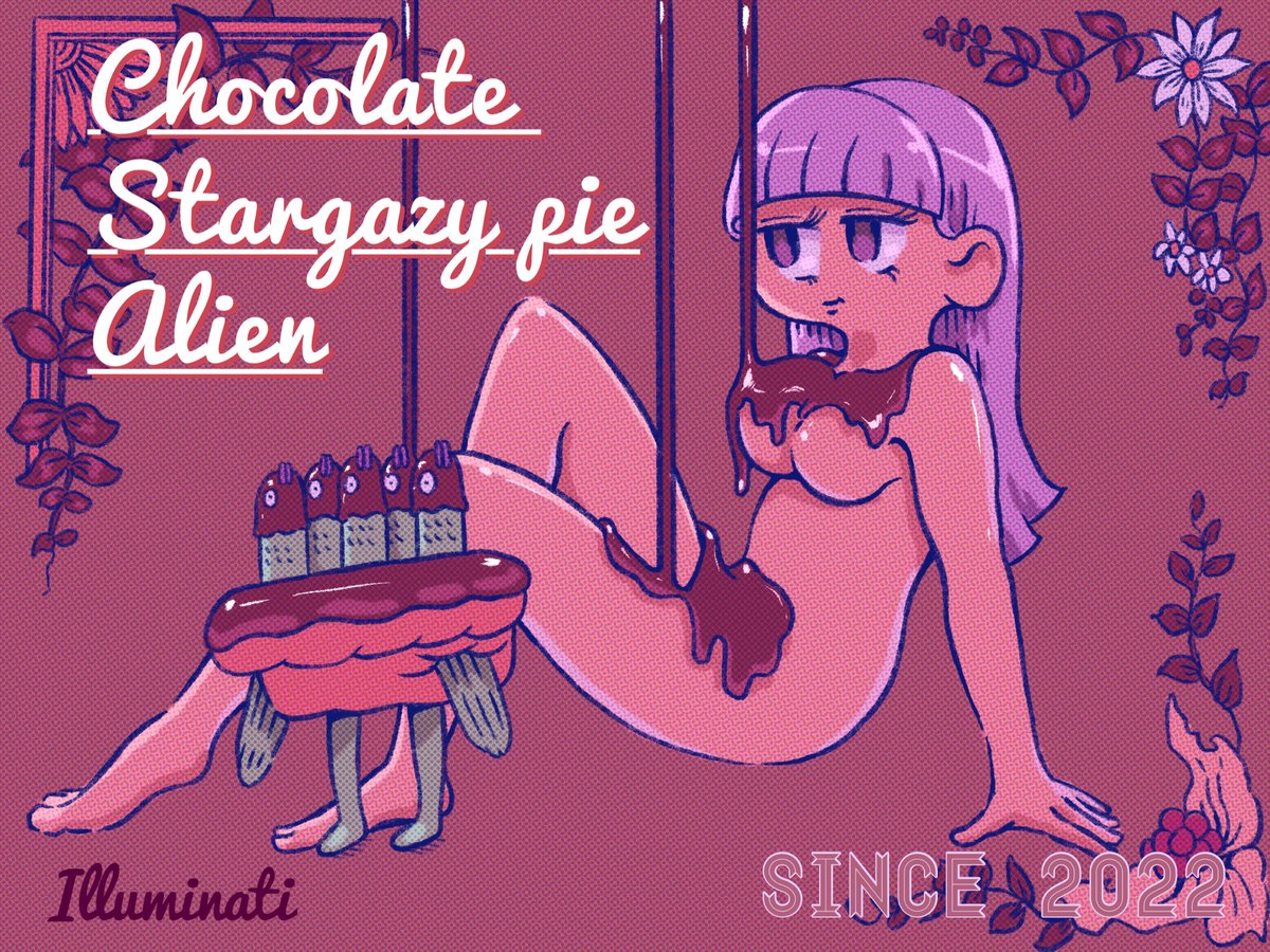チョコスターゲイザーパイ星人🥧🍫 #絵 #イラスト #漫画 #illust #エイリアン #エイリアンと繋がりたい