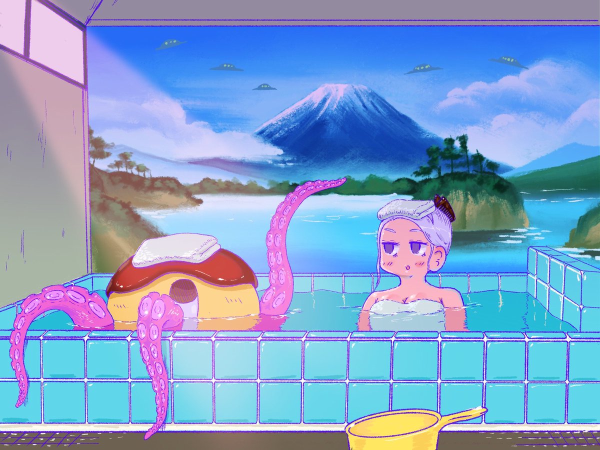 たこ焼きエイリアンin銭湯♨️ #絵 #イラスト #漫画 #illust #エイリアン #エイリアンと繋がりたい