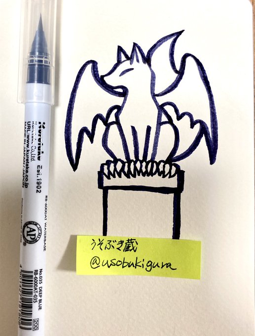 #kuretake_inktober2022 に参加します #Inktober2022 #inktober 1.GARGOYLE/ガーゴイル 狐のガーゴイルを描いてみました 【使用画材】ZIGクリーンカラーリアルブラッシュよりDEEP BLUE 呉竹×レトロ印刷コラボキャンペーンで頂いたものです #絵描きさんと繫がりたい #秋の創作クラスタフォロー祭