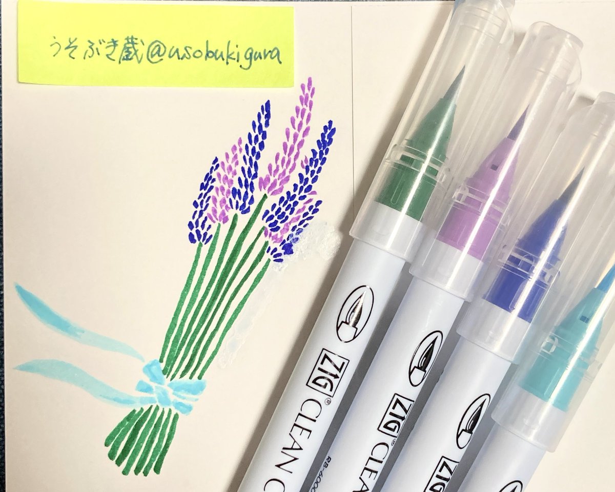 #inktober2022 #kuretake_inktober2022 #Inktober_PerfectChallenge #kuretakeinktober2022_giveaway 6. BOUQUET 花束 【使用画材】 ZIGクリーンカラーリアルブラッシュの4色 呉竹×レトロ印刷コラボキャンペーンで頂いた物です