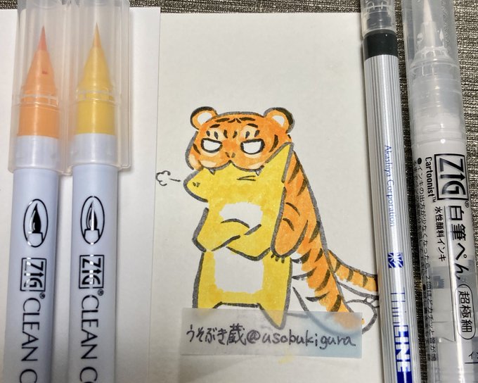 #inktober2022 #kuretake_inktober2022 #Inktober_PerfectChallenge #kuretakeinktober2022_giveaway 20. BLUFF ブラフ 途中でナンバリング間違えてましたね…虎の威を借る狐 【使用画材】 あかしや水彩毛筆「彩」極細青墨 ZIGクリーンカラーリアルブラッシュ2色 ZIG CARTOONIST 白筆ぺん超極細