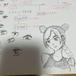 昨日るうちゃんに説明しながら書いてた家系図と落書きとたくさんの目 上の数字はジョジョのアニメの話数