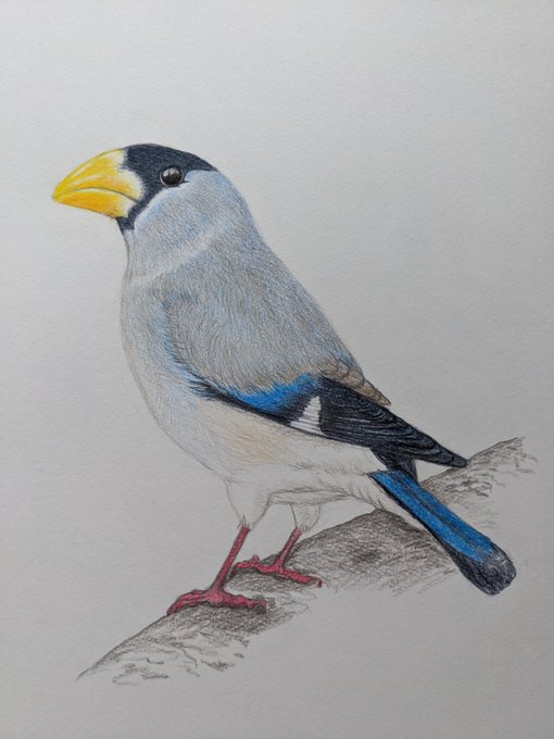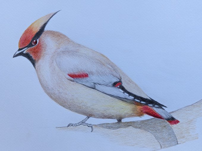 2 63 初めて見た #ヒレンジャク がカッコ良かったので #色鉛筆 で描いてみました #鳥の絵 久々です twitter.com/usuyuki29/stat… 23/03/19 18:52