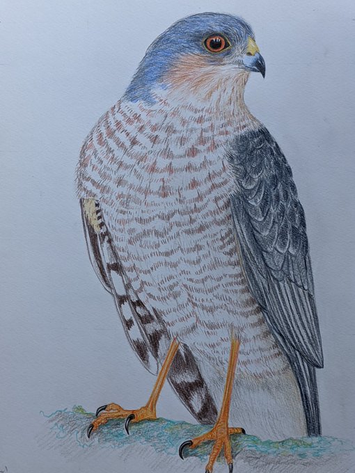 1 104 オレンジ色の目と足がお気に入り #ハイタカ #色鉛筆画 #鳥の絵 21/09/24 16:21