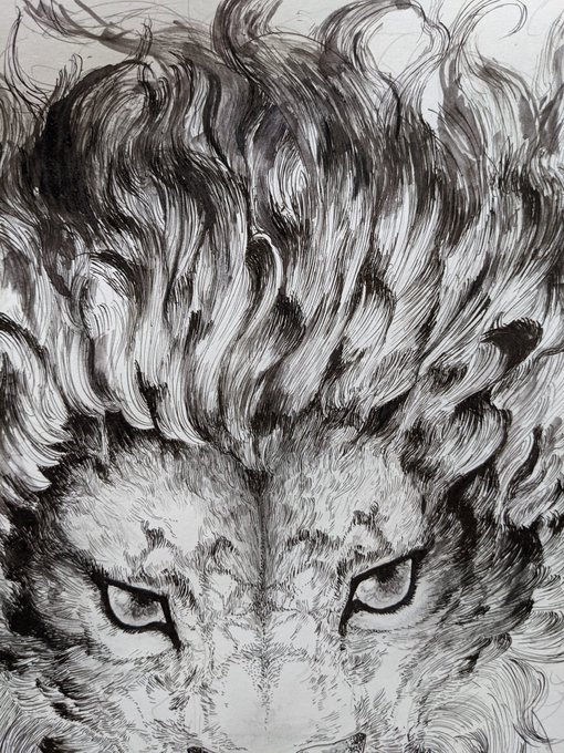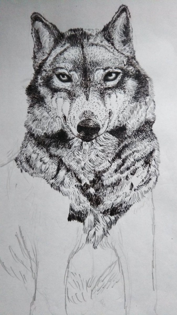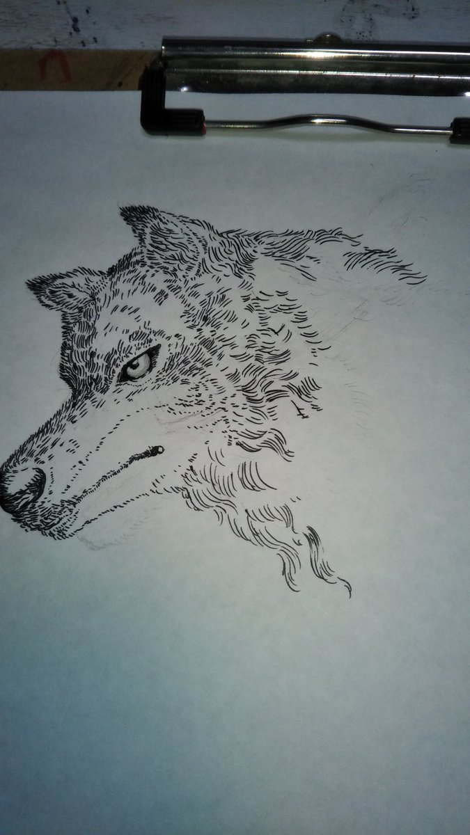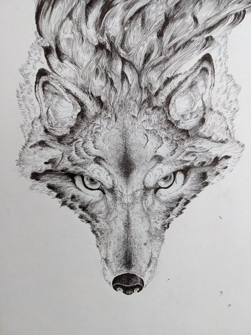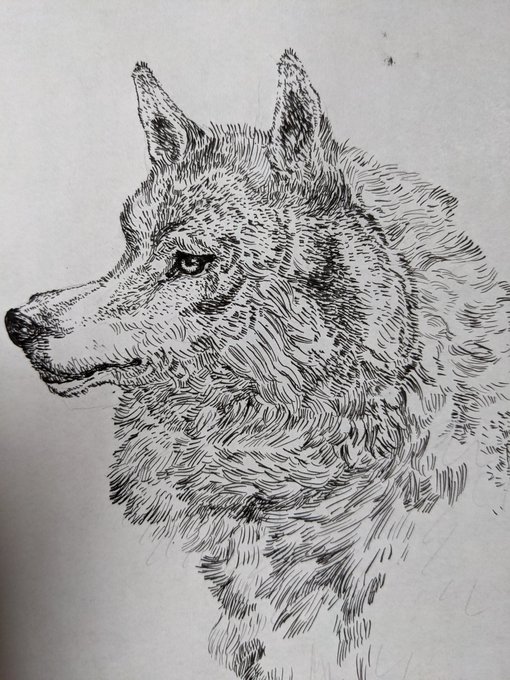 少ししか書き込めない… 完成させる!!! がんばる!!! #絵柄が好みって人にフォローされたい #ペン画 #狼 #絵柄が好みって人がいればいいなぁ