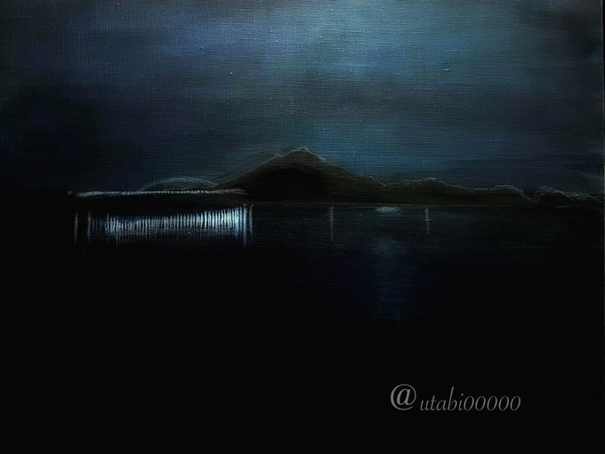 こんばんは🌝 本日絵筆が進まない わたし #シーシュポスの条件 #いいね 💛 #フォロー #フォロバ #リツイート ありがとうございます #絵描きさんと繋がりたい #みんなで楽しむTwitter展覧会 #春の創作クラスタフォロー祭り #アトリエの系譜 #acrylicpainting #art #芸術の輪 #風景画 #月