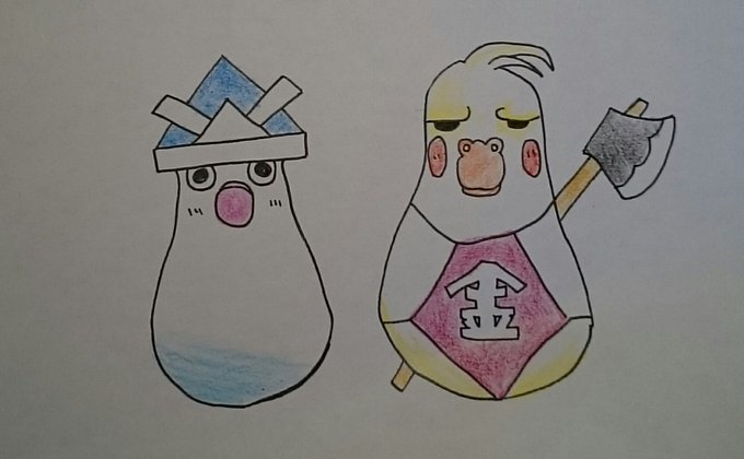 今日はハロウィーン。いいちこインコさんと、チュン太さんが、コスプレすると、こうした感じかな?😊 #ハロウィンイラスト #ハロウィン #いいちこインコ #色鉛筆イラスト #色鉛筆 #絵描きさんと繫がりたい #イラスト初心者 #イラスト好きな人と繋がりたい