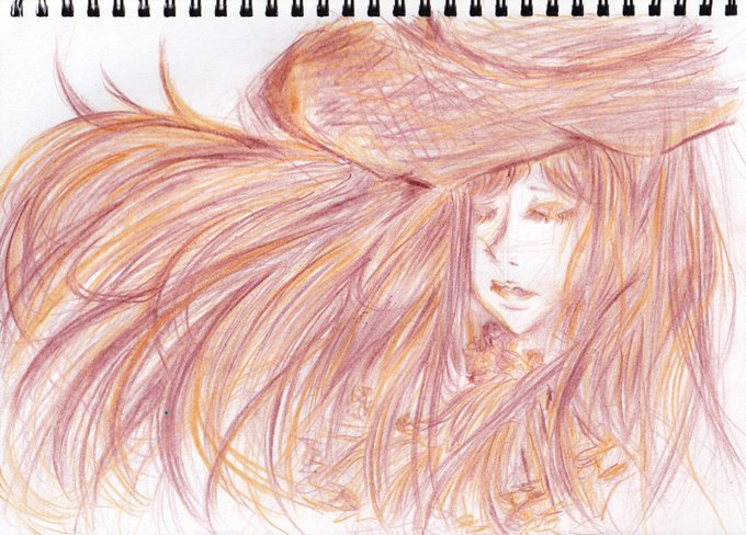夜中用事がありまして、その合間を見てお絵かきしてました。たまに顔を出す感じだったので、テスタメントを描き描き。悪戯に前髪作ってみたり。これは赤茶色と黄土色の色鉛筆のみで描いてます。100均のツイン色鉛筆というものです。 #イラスト #お絵かき練習中 #ggst #ギルティギア #色鉛筆画